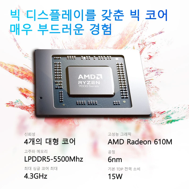 1. Processor: AMD Ryzen ™ R5-7520U, Maximum single-core frequency: 4.3GHz, 4MB Smart Cache, 4 cores, and 8 logical threads.